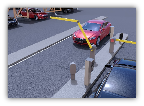 The moment the barrier opens, the vehicle can drive through, this works with loop detection. If the vehicle drives under the barrier, the barrier cannot be lowered, if the vehicle has passed the loop detector, the barrier closes again and the license plate is checked in or out in the system
